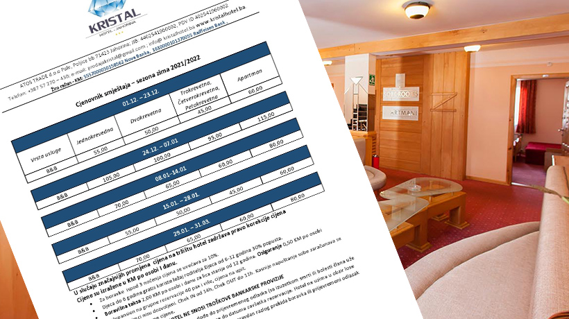Na Jahorini je 2001 godine, na nadmorskoj visini od 1550 m. prateći moderne standarde ugostiteljstva, sagrađen Hotel Kristal.